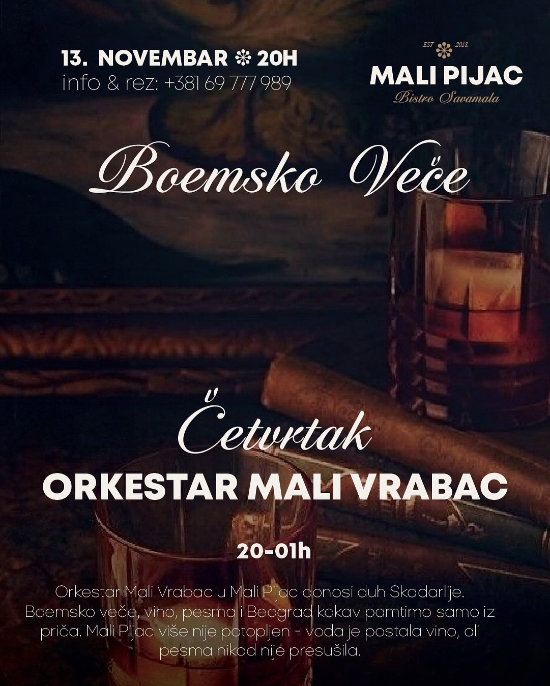 Bistro Mali Pijac otvoren je u centru Savamale, novembra 2018 godine u objektu “Vučine kuće” koji spada u kulturno dobro i spomenik kulture grada Beograda. Dizajn i arhitekturu je potpisao Studio Fluid.
